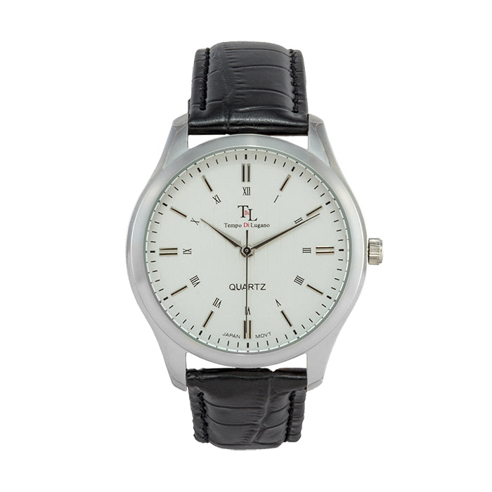 Crafted for the modern man and woman this beautiful timepiece combines a classic feel with a timeless look. With its striped silver dial and sharp black Italian leather band, it...